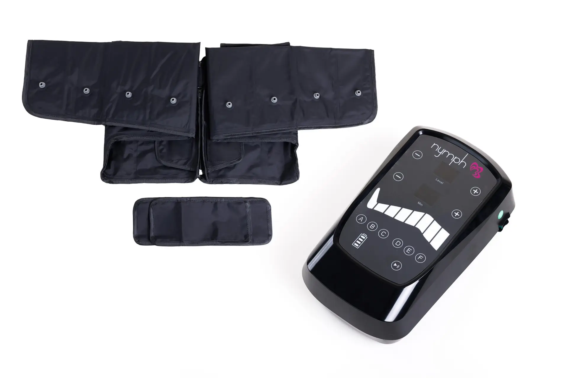 - ✦ Type: Nymph 8 PLUS – 8-kanaals pressotherapie toestel met 6 programma’s (A–F)